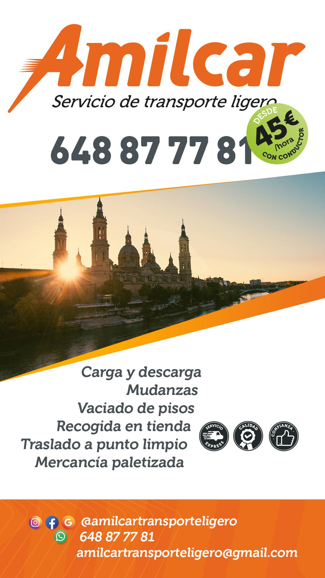 Hola soy autónomo y trabajo en él área transporte mudanzas reparto de paquetería grande tamaño envíos 📦 logística me ofrezco para realizar cualquier tipo de transporte para empresas y particulares en zaragoza estoy disponible tengo experi... Leer más Hola soy autónomo y trabajo en él área transporte mudanzas reparto de paquetería grande tamaño envíos 📦 logística me ofrezco para realizar cualquier tipo de transporte para empresas y particulares en zaragoza estoy disponible tengo experiencia en el sector no dude en pedir presupuesto o cualquier tipo de oferta de trabajo PRESUPUESTO GRATIS 648877781 Amilcar seguros y documentación al día tenemos oficina almacén recibos cualquier tipo de mercancía logística para el transporte Leer menos